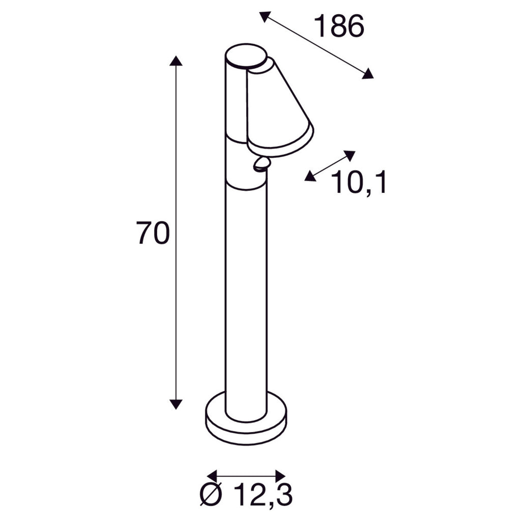 T-TUBE 70 free-standing uz virsmas montējams LED dārza gaismeklis ar infrasarkano kustības sensoru, GU10 10W, IP44, IK06, melns