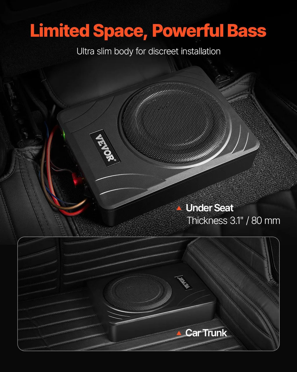 Plāns un kompakts dizains: Mūsu īpaši plānais 7,9 cm zem sēdekļa automašīnas subwooferis ar iebūvētu pastiprinātāju viegli ievietojas zem automašīnas sēdekļa, taupot vietu un uzlabojot auto audio sistēmu. Izbaudiet dziļus un jaudīgus basus un ieskaujošu skaņas kvalitāti, kas padara katru braucienu patīkamāku.