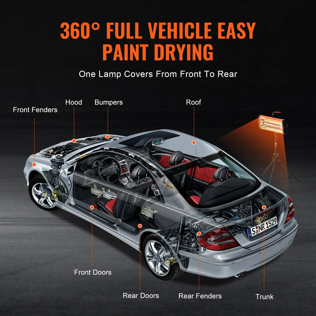 VEVOR 2000 W portatīva/stenda infrasarkanā krāsas žāvēšanas lampa automašīnu žāvēšanai un apkurei