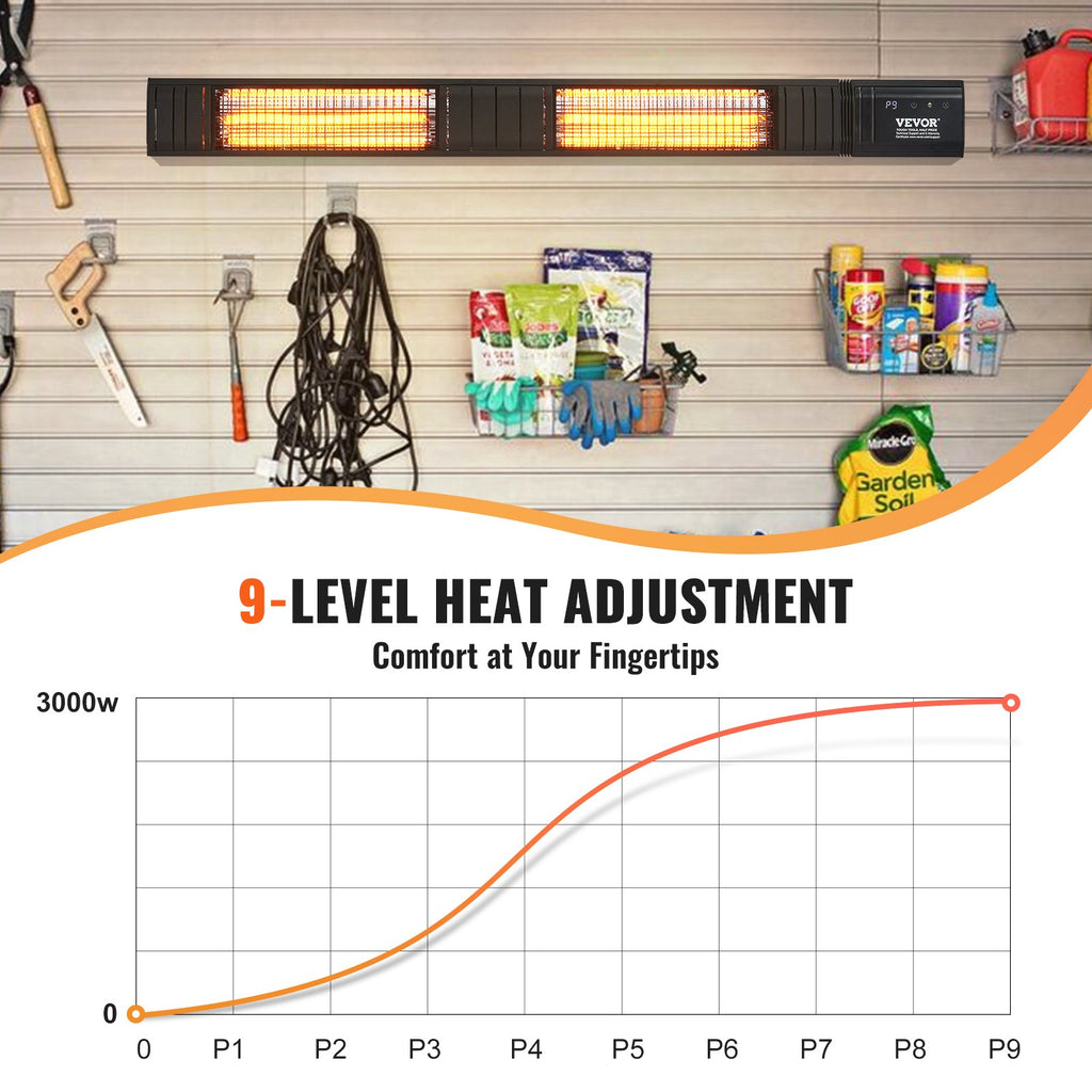 VEVOR 3000 W infrasarkanais elektriskais sildītājs ar tālvadību, 9 ātrumi, taimeris