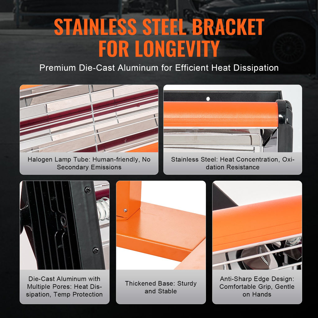 VEVOR 3300W infrasarkanā krāsas žāvēšanas lampa ar statīvu, 0,8 m² pārklājums, 1–60 min taimeris