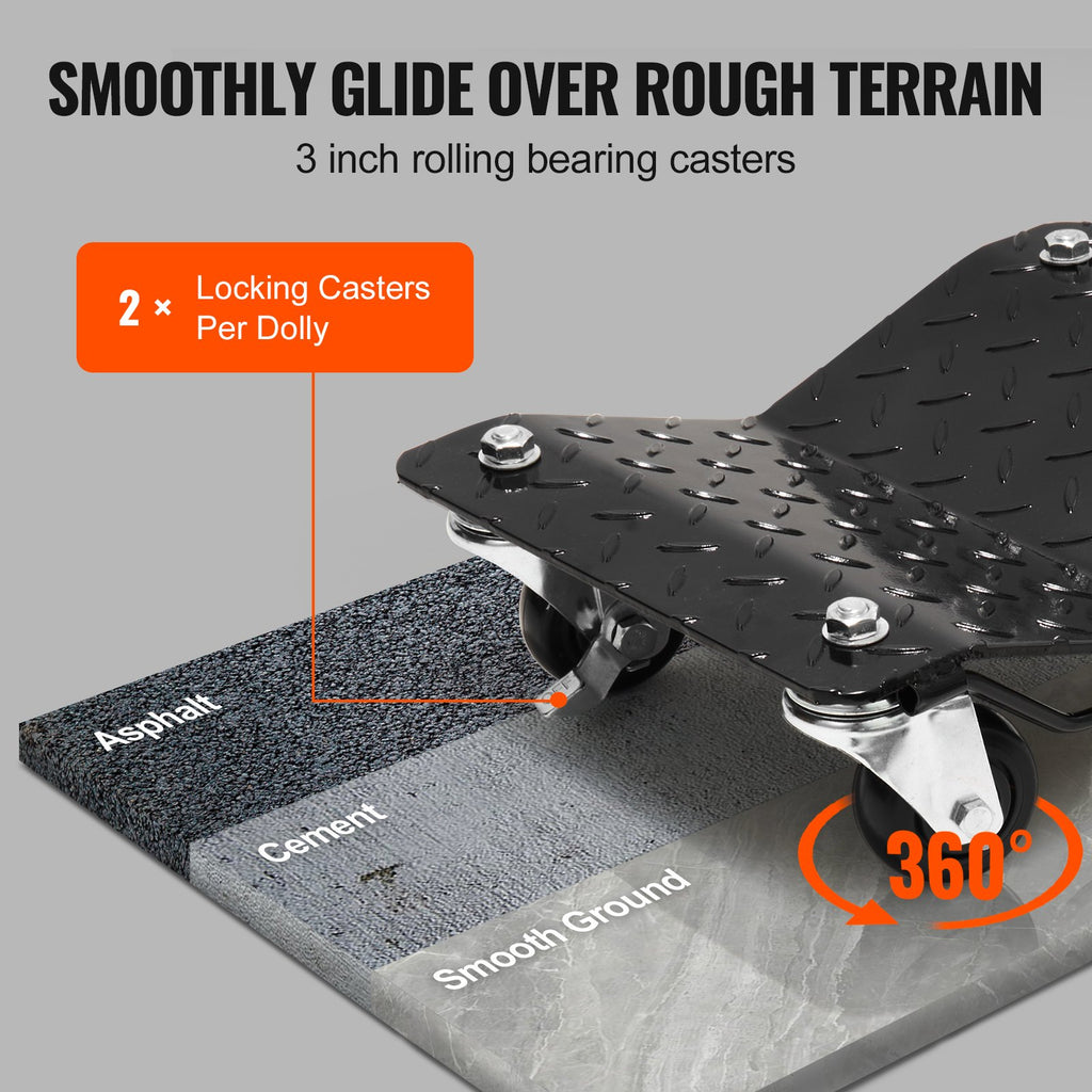 VEVOR auto remonta ratiņu komplekts (4 gab.) smagas slodzes auto remontam – 2 722 kg