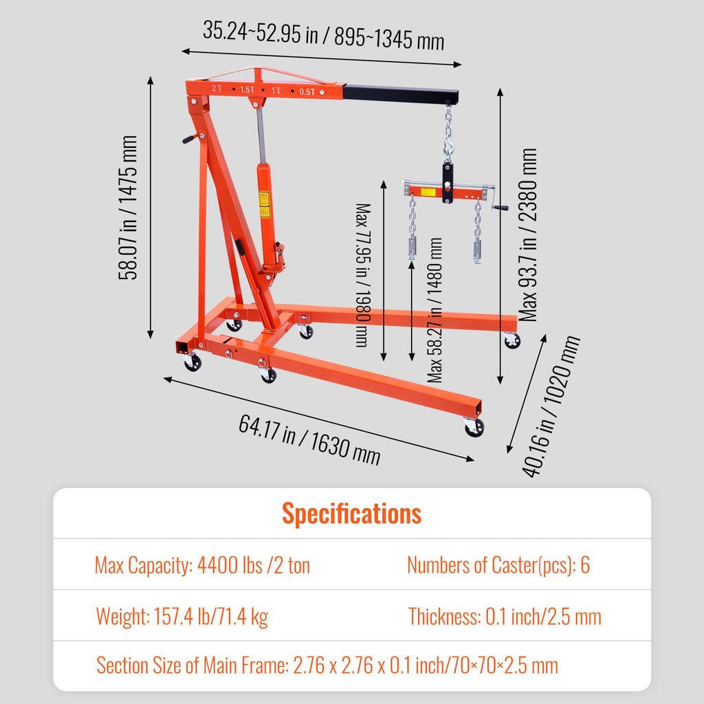 VEVOR hidrauliskais dzinēja pacēlājs apvieno jaudīgu dzinēja celtni un standarta līmeņošanas ierīci. Aizmirstiet par atsevišķa aprīkojuma iegādi – šis 2-vienā risinājums nodrošina visu nepieciešamo, ietaupot gan laiku, gan fizisku piepūli.