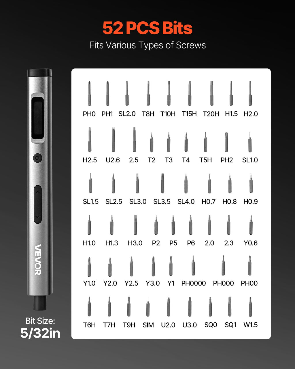 VEVOR elektriskais precīzais skrūvgriežu komplekts, mini elektriskais skrūvgriezis ar 52 magnētiskiem uzgaļiem no S2 tērauda, magnētiska uzglabāšanas kārba, LED apgaismojums, Type-C uzlāde elektronikas remontam