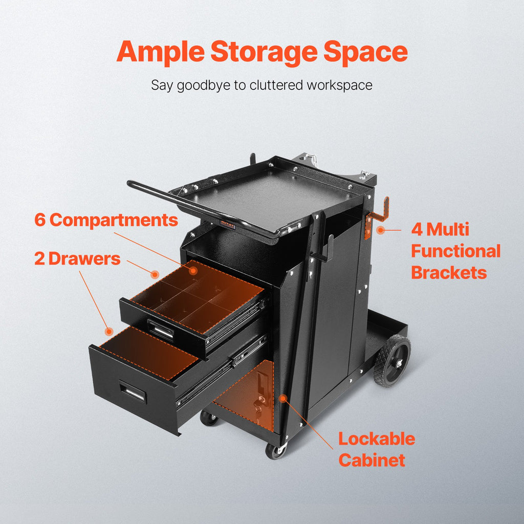 Vai jums apnicis nekārtīgs darba galds metināšanas laikā? Grūti atrast nepieciešamos instrumentus? Sarežģīti pārvietot gāzes balonus? VEVOR metināšanas rati ar 2 atvilktnēm, slēdzamu skapīti, augstu kravnesību un plašu uzglabāšanas vietu spēj apmierināt visas jūsu mobilitātes vajadzības metināšanas laikā, padarot darbu efektīvāku.