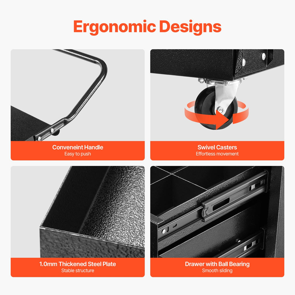 Izturīga svara kapacitāte: VEVOR metināšanas rati ar atvilktnēm iztur līdz 159 kg statiskas slodzes un līdz 136 kg dinamiskas slodzes. Tie viegli tiek galā ar smagu aprīkojumu, lieliski piemēroti MIG, TIG metināšanas iekārtu, plazmas griezēju un citu metināšanas piederumu glabāšanai un pārvietošanai, atbilstot profesionālu darbu prasībām.