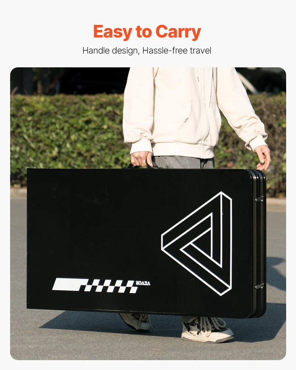 VEVOR pārnēsājams Beer Pong galds, 244 cm, salokāms galds ar 914 mm augstumu, pārnēsāšanas rokturiem un 6 bumbiņām, viegls ballīšu galds birojam, izbraukuma ballītēm, ceļošanai un kempingam, melns
