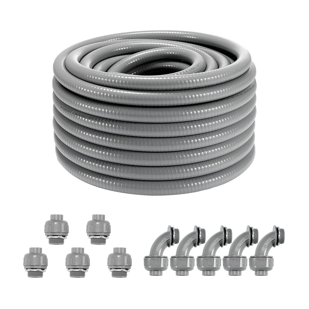 30,5 m elastīgā elektriskā caurule ir komplektā ar 5 taisnajiem savienotājiem un 5 ar 90 grādu leņķi, nodrošinot pielāgošanos dažādām instalācijām. Visi komponenti atbilst FT1 ugunsizturības standartiem, sniedzot jums sirdsmieru. Lai atbilstu dažādu projektu prasībām, piedāvājam trīs ērtus izmērus: 12,7 mm, 19,1 mm un 25,4 mm. Izvēlieties ideālo variantu tieši savām vajadzībām!