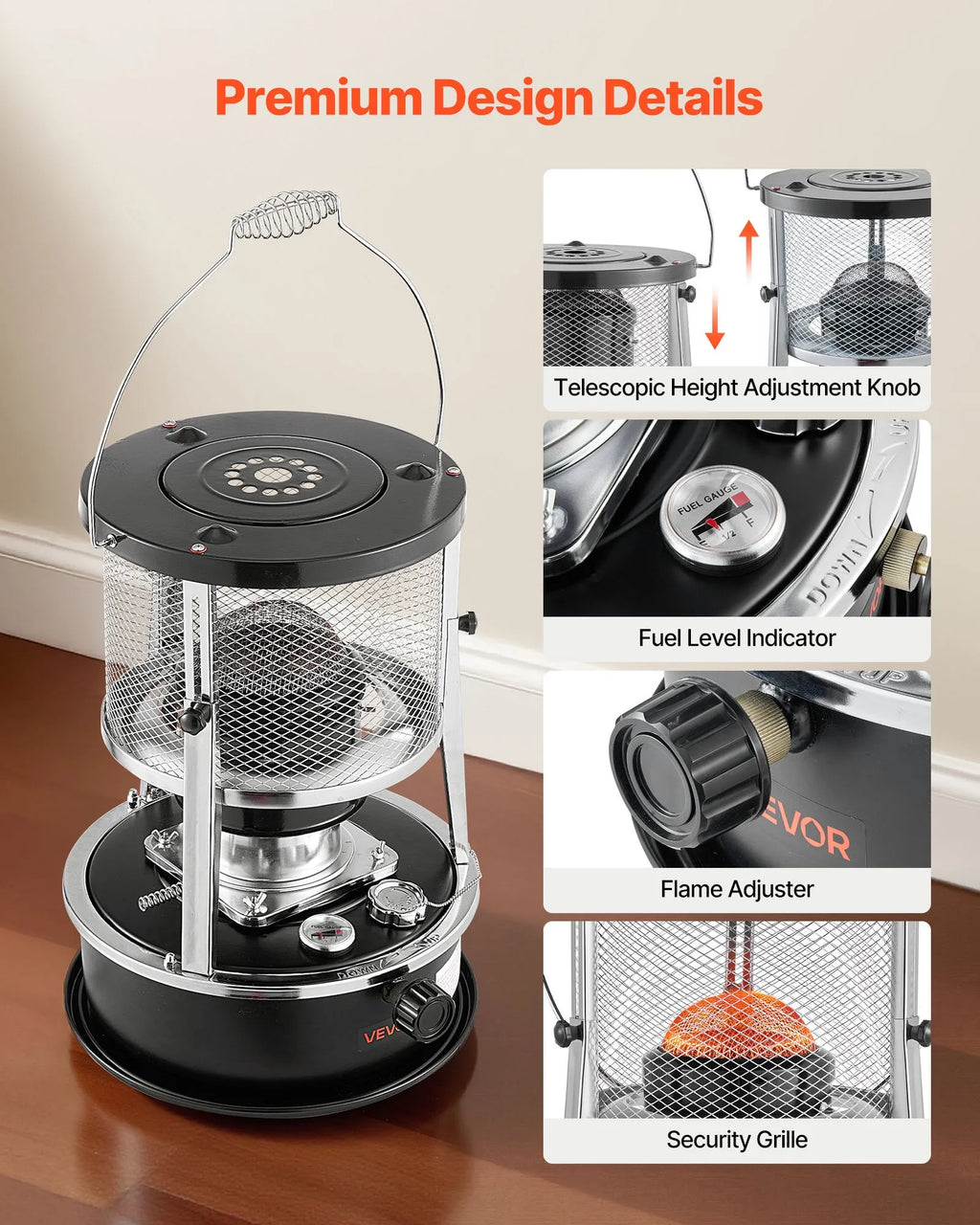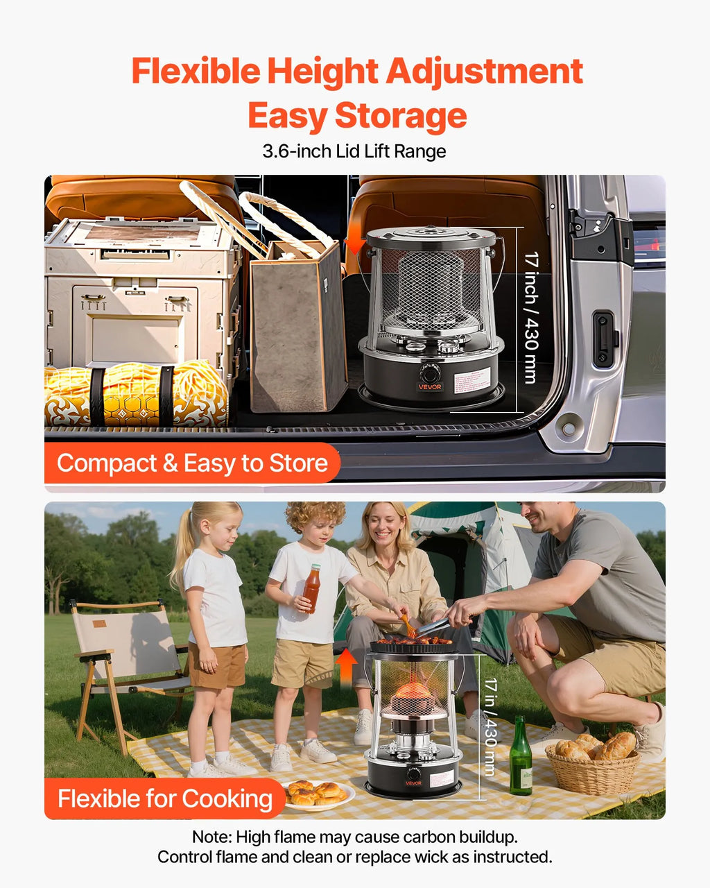 9000 BTU портативный керосиновый обогреватель и плита 2 в 1, без электричества, регулируемая высота и пламя, легко хранить, подходит для кемпинга, охоты, приготовления пищи, дома или гаража, черный
