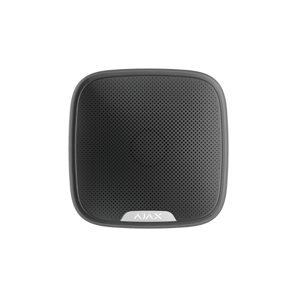Беспроводная уличная сирена Ajax StreetSiren, которая подает сигнал тревоги при срабатывании детектора. Она подходит для наружных территорий, чтобы предупредить об опасности или отпугнуть злоумышленников. Сирена работает только в сочетании с одной из контрольных панелей Ajax.
