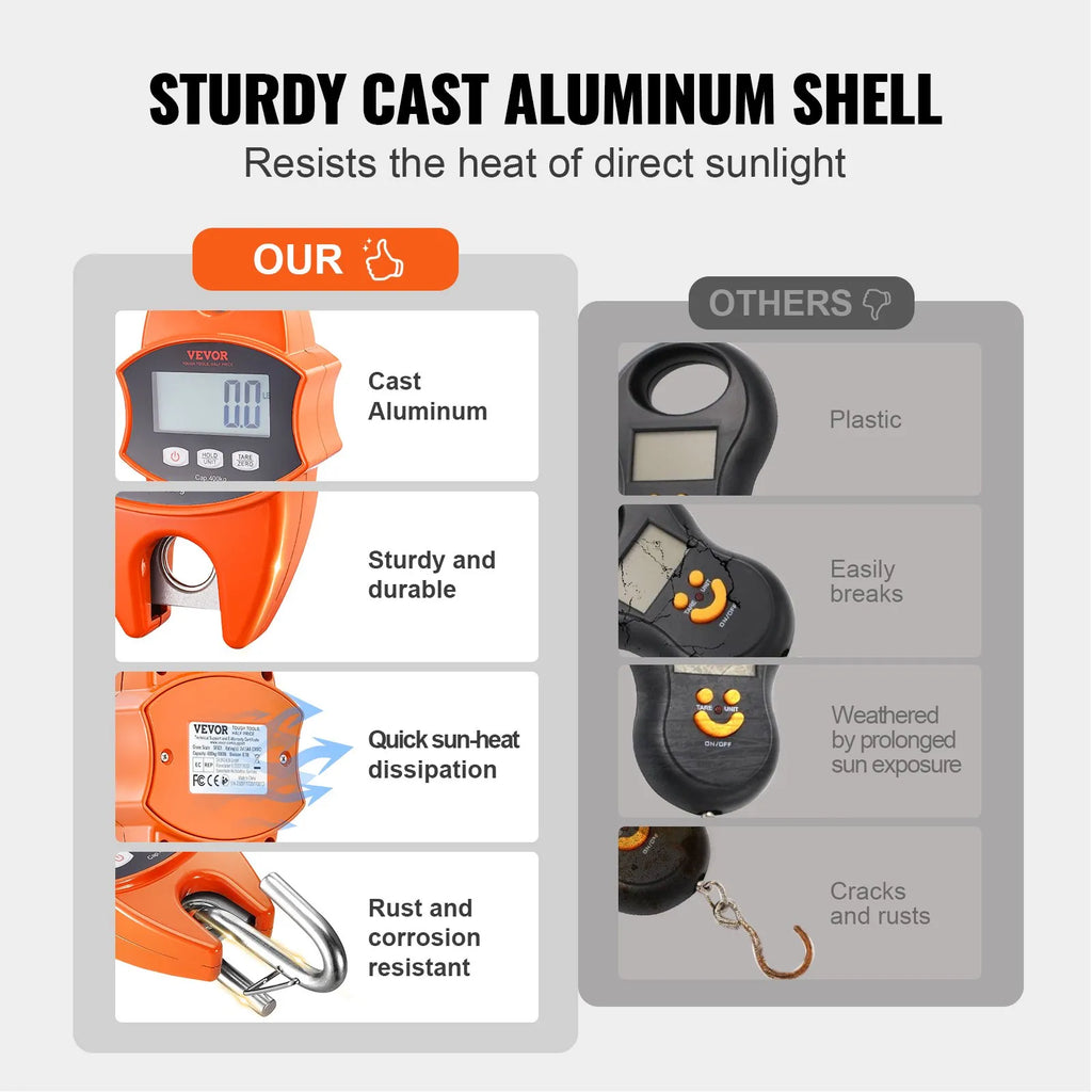 Digitālie celtņa svari 400 kg, industriālie piekaramie svari ar alumīnija korpusu un LCD ekrānu, rokas mini svari ar āķiem, oranži