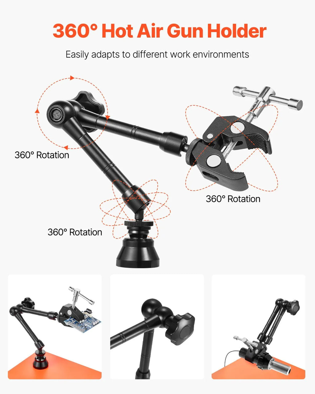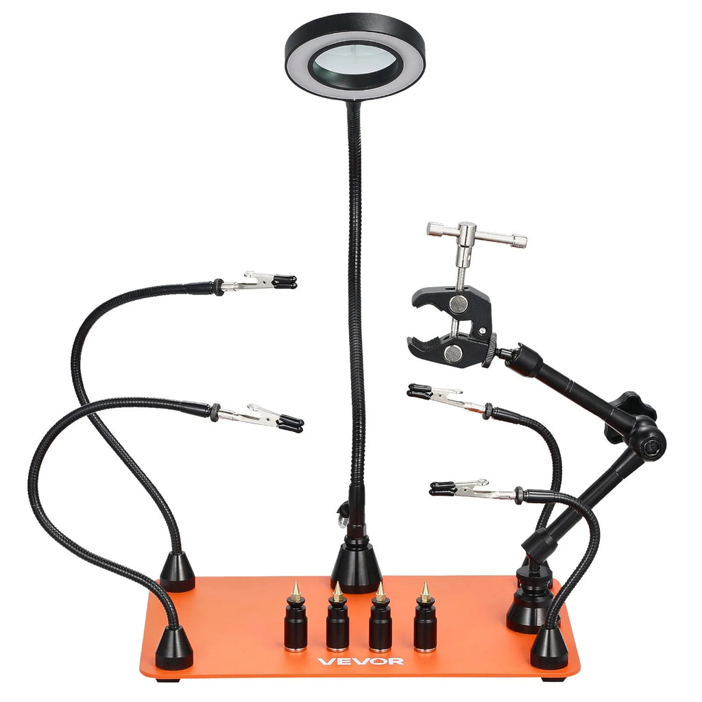Магнитная паяльная станция с третьей рукой, 3× светодиодной лампой, 4 держателями для печатных плат и 360° держателем для пистолета горячего воздуха, сверхмощная базовая модель для работы с электроникой