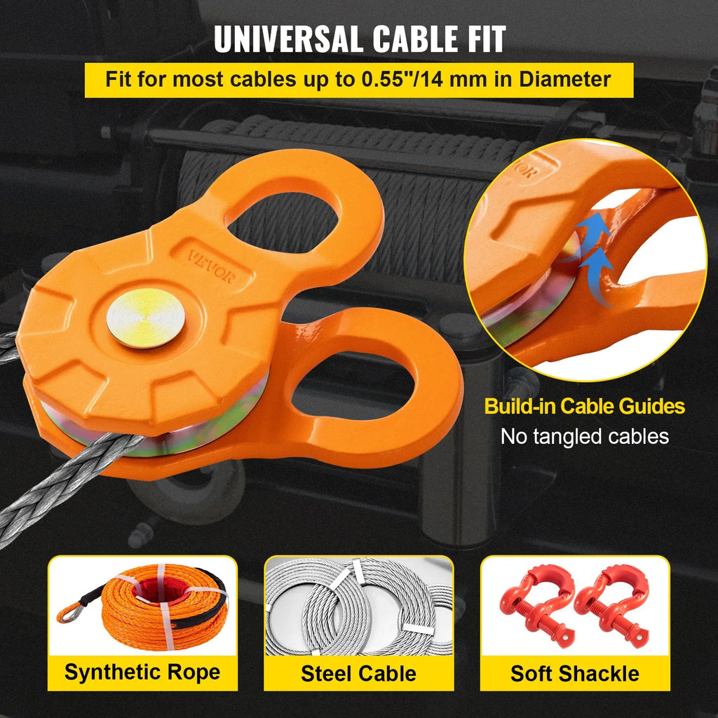 Этот блок подходит для синтетических или стальных тросов диаметром до 14 мм, а также для мягких зажимов. Встроенные направляющие каната предотвращают его спутывание, обеспечивая дополнительную безопасность во время использования. Благодаря универсальной адаптации он совместим с различными лебедками и аксессуарами.