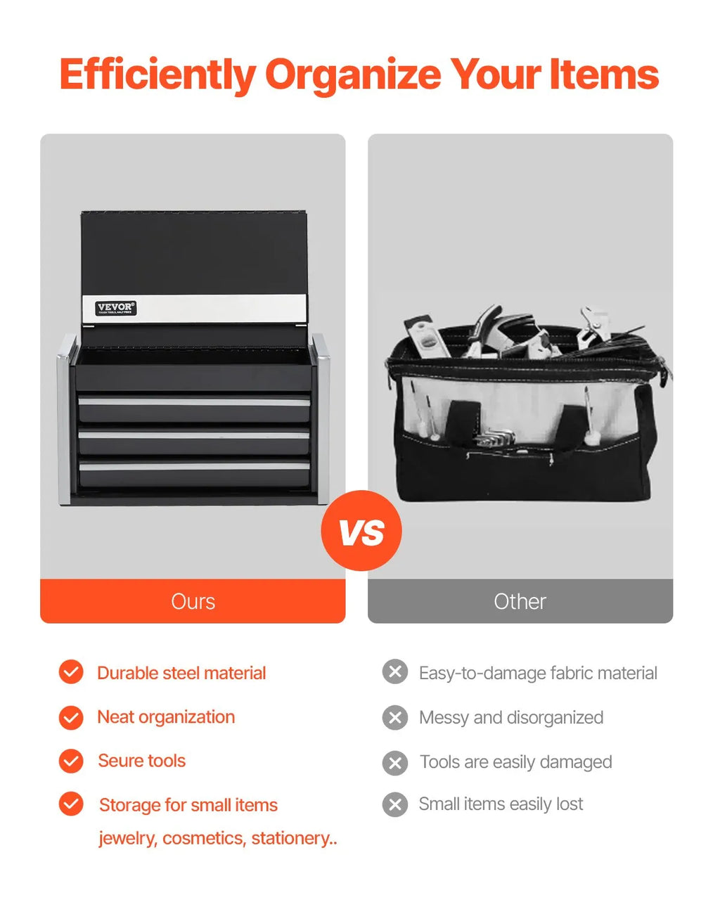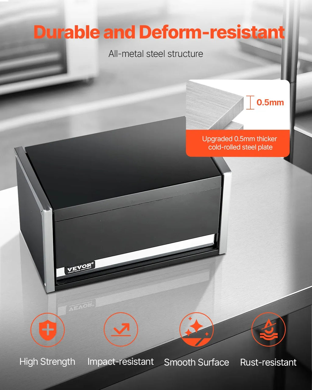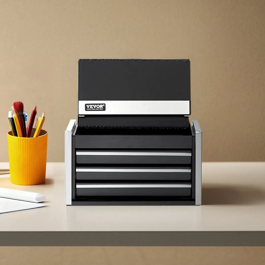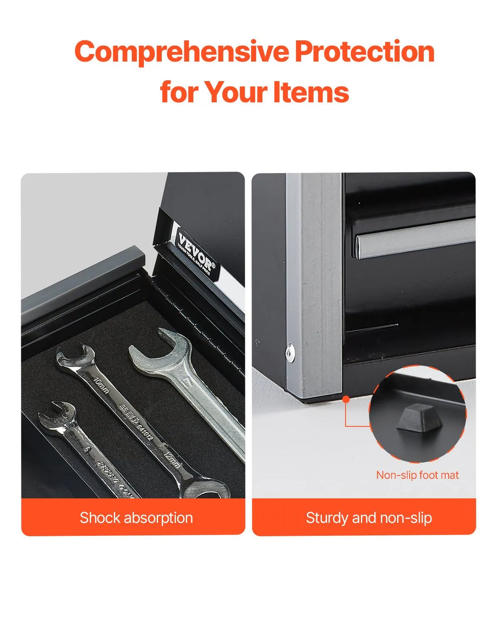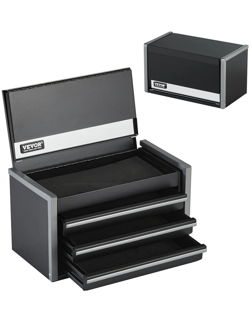 VEVOR 21,8 cm pārnēsājamā metāla instrumentu kaste ar 3 atvilktnēm, tērauda korpuss ar lodīšu gultņu mehānismu, EVA ieliktņiem un PP kājiņām, pulverkrāsas pārklājums, melna