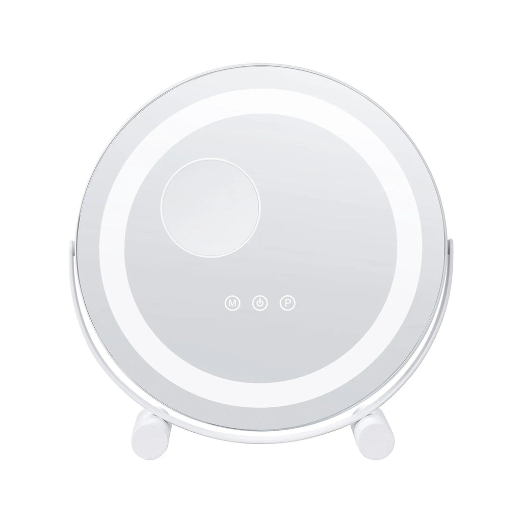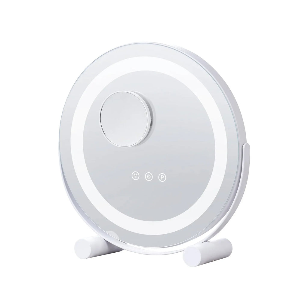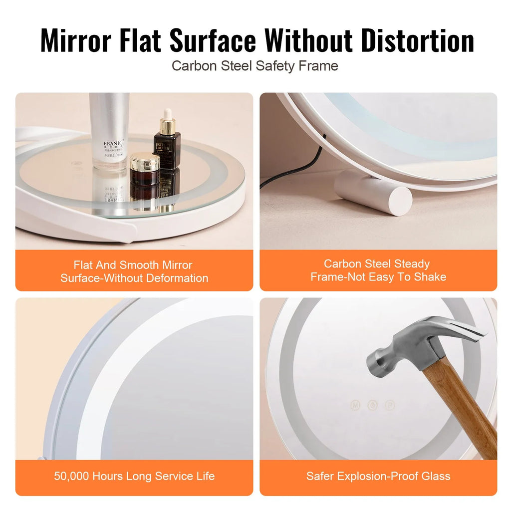 VEVOR apaļš LED grima spogulis ar apgaismojumu, 30 cm spogulis ar 3 gaismas režīmiem, 5× palielinājumu, skārienvadību un 360° rotāciju tualetes galdam (balts)