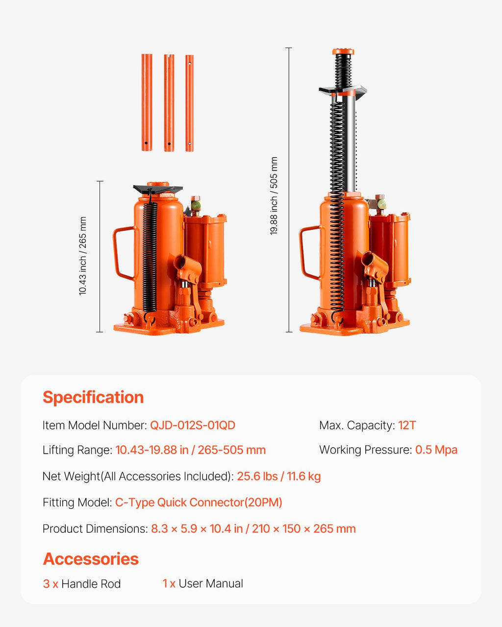 VEVOR пневматический гидравлический домкрат 12 тонн, ручной ручной насос машина для ремонта автомобилей