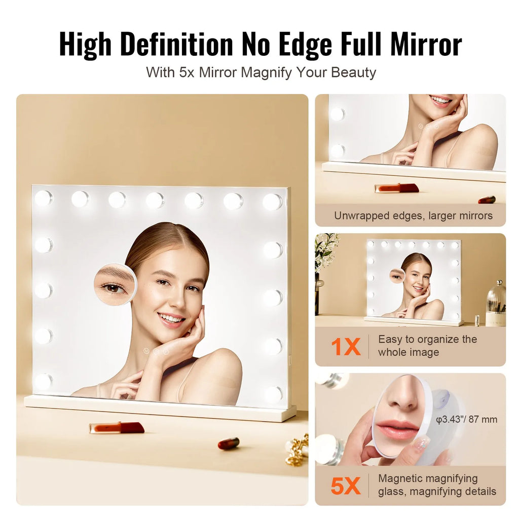 VEVOR Holivudas tualetes spogulis ar apgaismojumu un USB, galda vai sienas stiprinājums, 58 × 46 cm