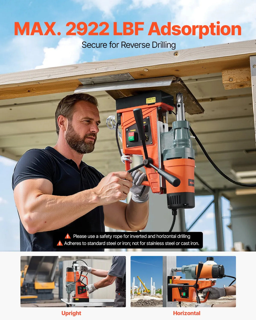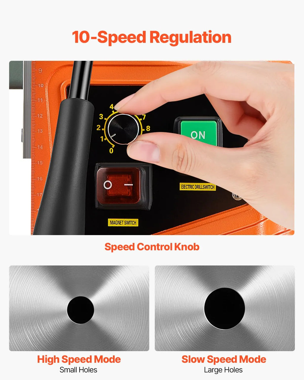 VEVOR magnētiskā urbjmašīna, 1550 W motors, 50,8 mm urbšanas diametrs, 13 000 N magnētiskā piespiedējspēka pārnēsājamais magnētiskais urbis, 0–500 apgr./min regulējams ātrums metāla apstrādei industriāli un mājas darbiem