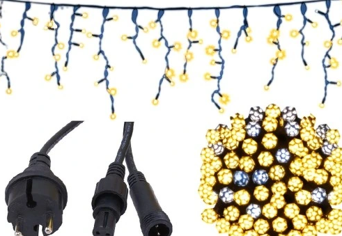 Ziemassvētku LED lāsteku virtene ar 200 lampiņām un zaļu BIEZU kabeli, silti balta gaisma, zibspuldzes efekts, 8m, IP44