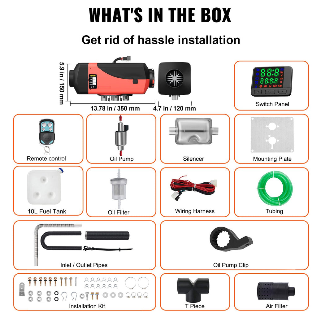 12V 2KW dīzeļa gaisa sildītājs garažām,treileriem, kemperiem, kravas automašīnām, laivām – 2000W ar skaņas slāpētāju(zemāk pilns apraksts)