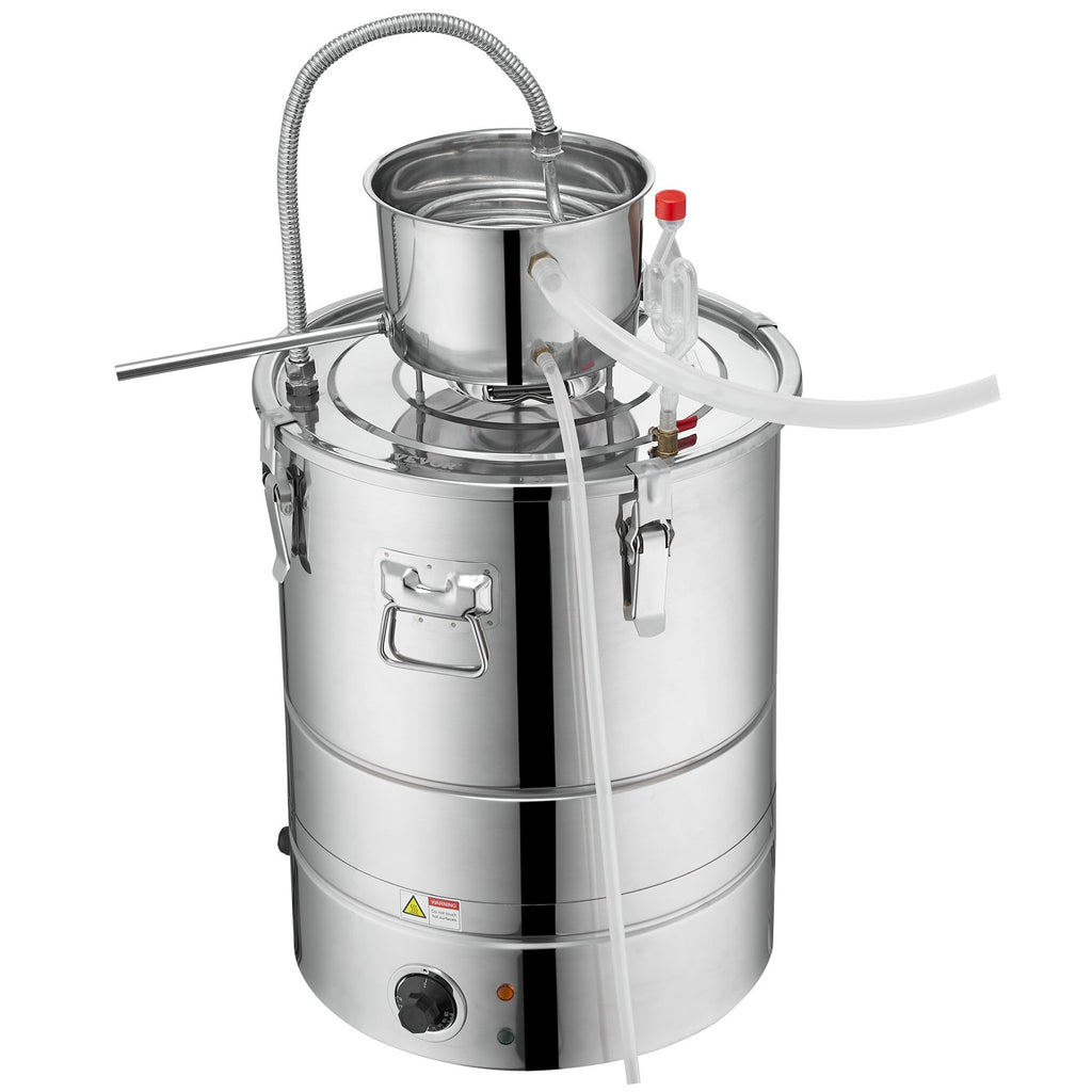 30L nerūsējošā tērauda ūdens destilators ar fermentācijas tvertni, kondensatora tvertni, kompresora trauku, ūdens sūkni un iebūvētu termometru, ideāli piemērots destilēšanai mājas apstākļos