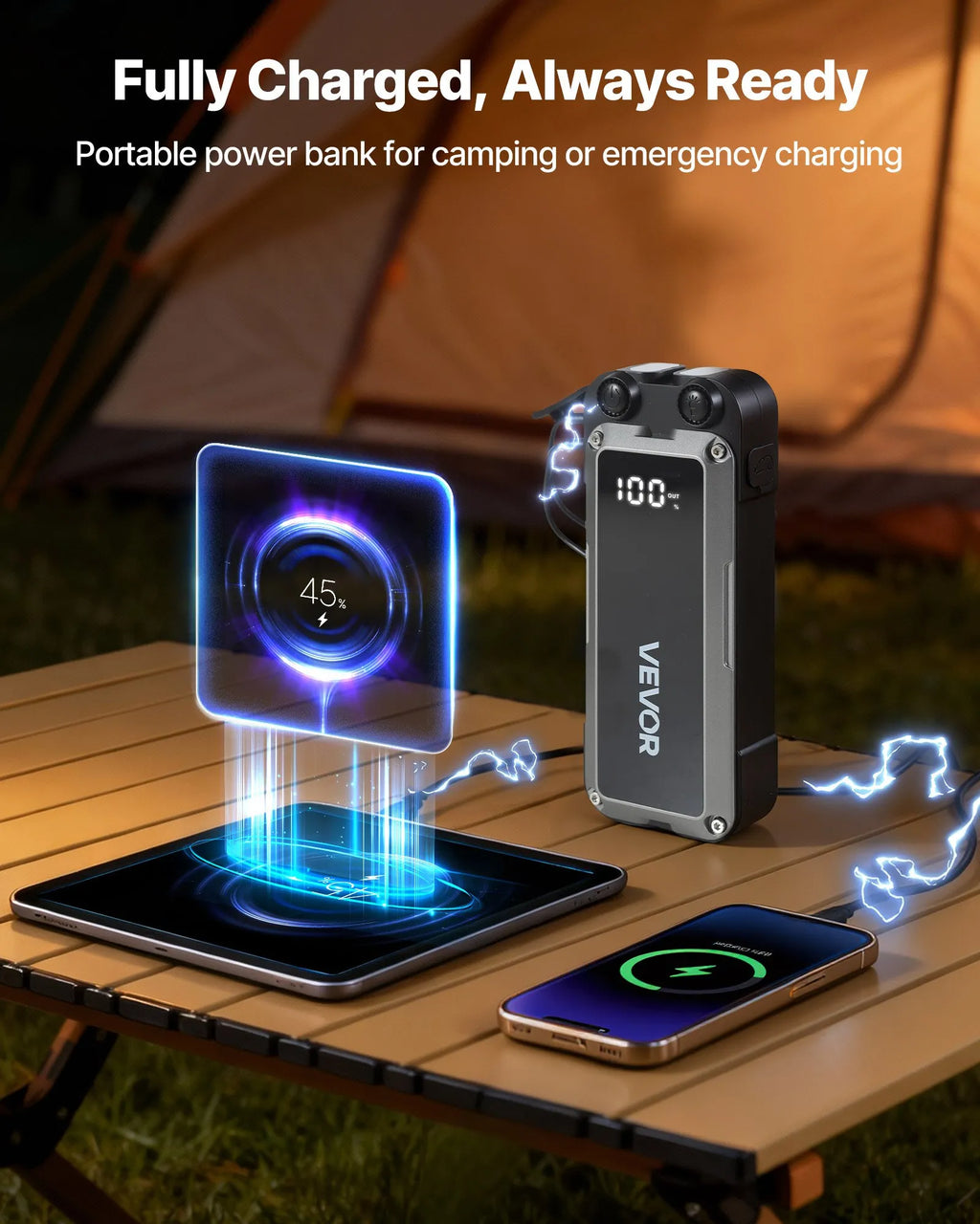 Šis daudzfunkcionālais produkts ir ne tikai auto akumulatora iedarbināšanas starteris, bet arī darbojas kā lukturītis un ārējais akumulators. Kompakts, jaudīgs un praktisks, tas ir universāls risinājums ārkārtas situācijām kempingā, bezceļa braucienos, nakts pastaigās un negaidītu elektroapgādes pārtraukumu laikā.