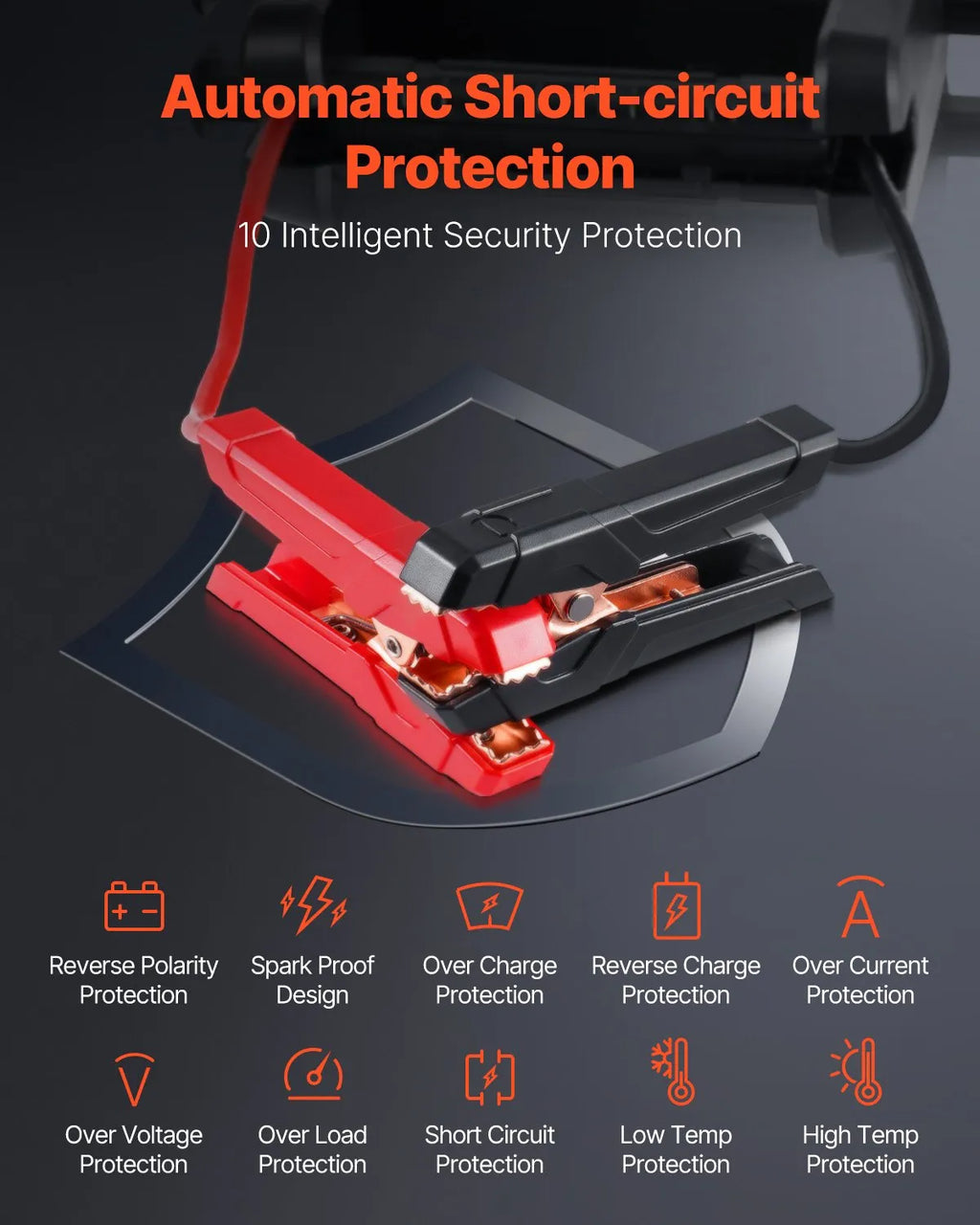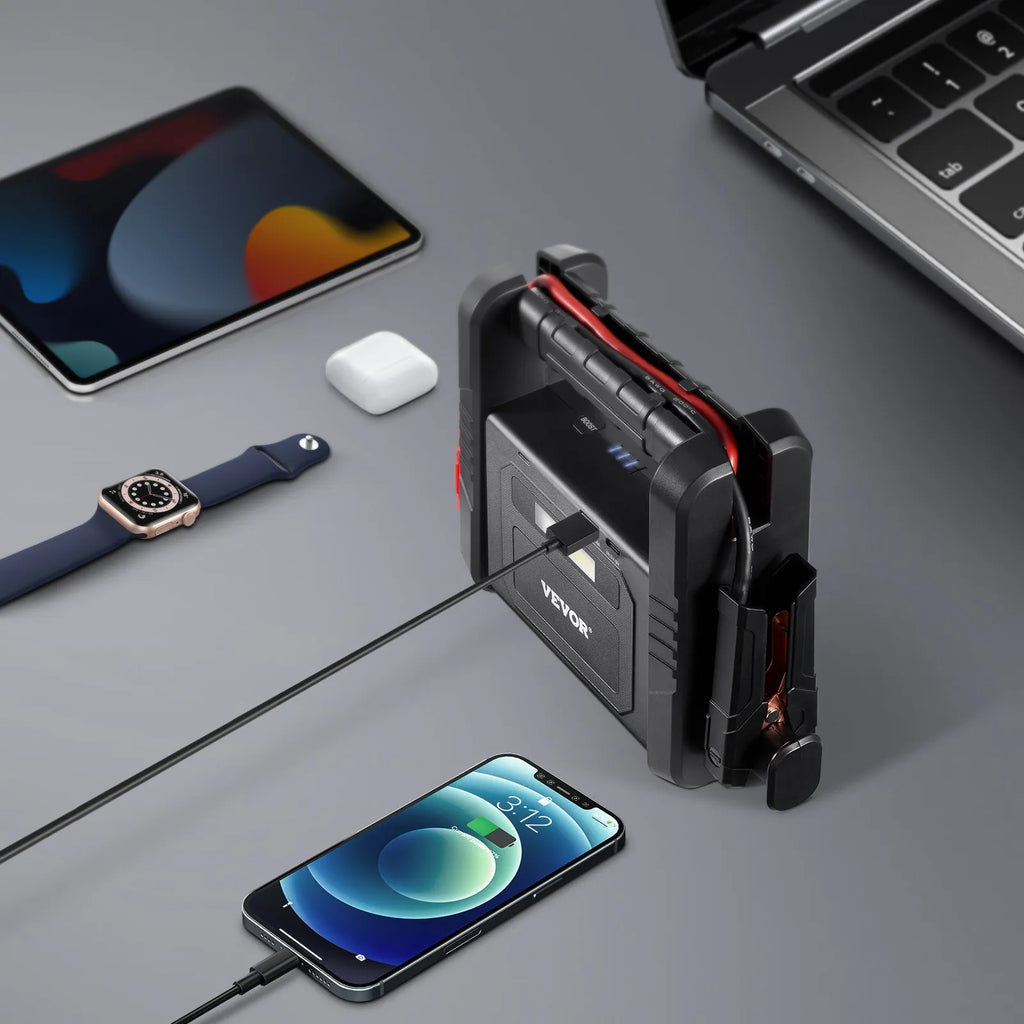 VEVOR automašīnas palaišanas ierīce, 4000 A starta strāva, 88,8 Wh litija akumulators, LED apgaismojums un palaišanas kabeļi, pārnēsājams starteris benzīna un līdz 10 L dīzeļdzinējiem