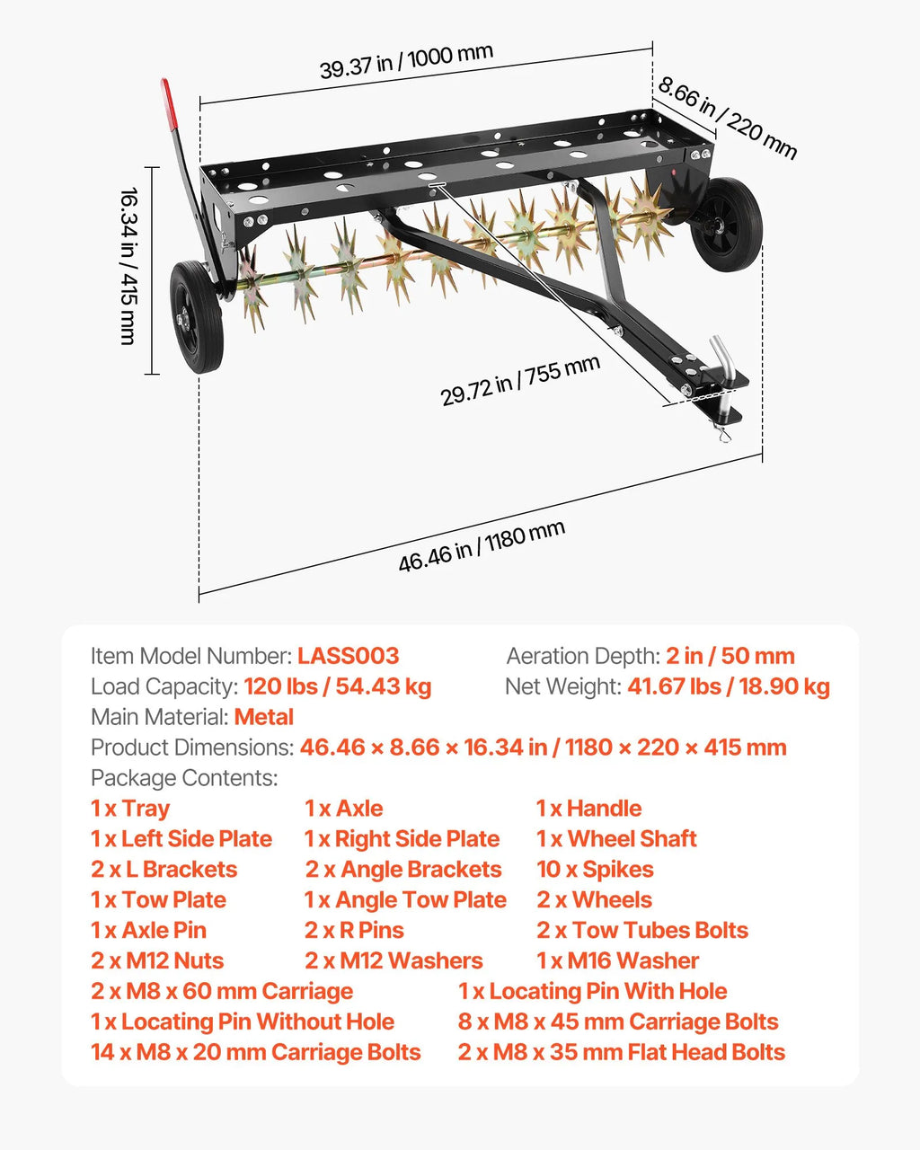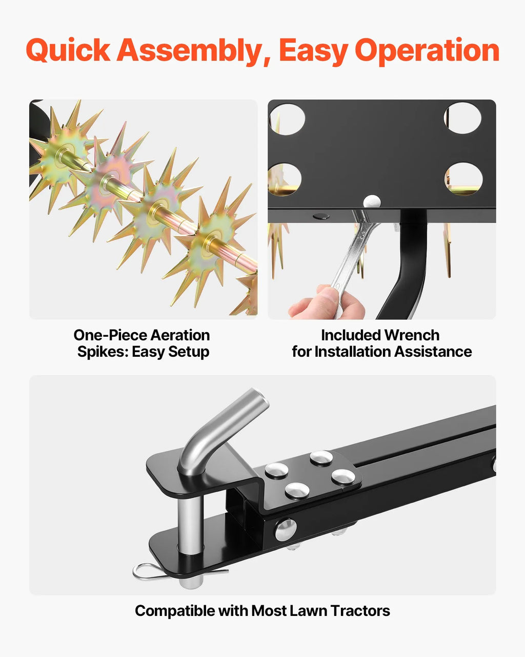 Izturīga konstrukcija ilgstošai lietošanai: Izgatavots no augstas izturības tērauda ar pilnībā metinātu rāmi un pastiprinātiem savienojumiem, šis zāliena aerators paredzēts ilgstošai lietošanai, arī mitros un sarežģītos āra apstākļos.