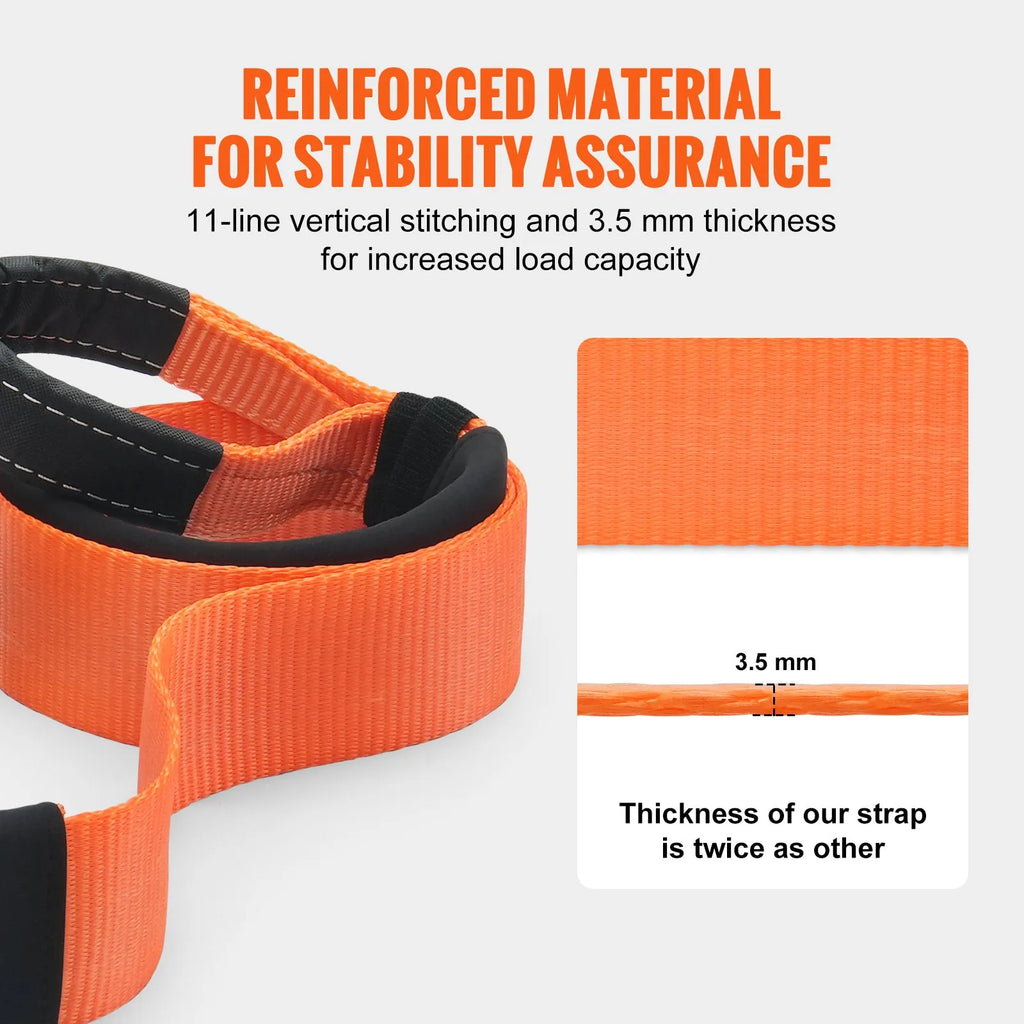 VEVOR smagas slodzes vilkšanas siksna ir paredzēta vissmagākajiem darbiem. Tās pārrāvuma izturība ir 16 329 kg, kas ir ideāli piemērota kravas automašīnu un smagas tehnikas vilkšanai. Siksna ir izgatavota no augstas kvalitātes poliestera, tāpēc tā spēj izturēt visprasīgākos uzdevumus, nebojājoties. Tās izturību vēl vairāk uzlabo modernā virsmas apstrāde, kas padara siksnu ūdensnecaurlaidīgu un izturīgu pret nodilumu. Neatkarīgi no tā, vai darbs notiek dziļos dubļos vai slidenā sniegā, šī vilkšanas siksna ir drošs palīgs. Spēcīgais dizains nodrošina, ka tā spēj izturēt pat visskarbākos apstākļus. Šī smagas slodzes vilkšanas siksna ir lielisks risinājums jebkurai transportlīdzekļa atgūšanas situācijai.