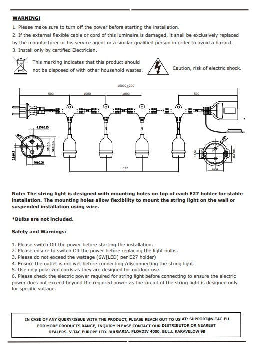 String Set_ Vattentät IP65 15m string komplett med 15 lampor (avstånd mellan lamporna 1m) glas LED filamentlampor (250Lm), varmvit 2700K, string med EU-kontakt i början och förseglad sockel i slutet (kan stängas i serie v